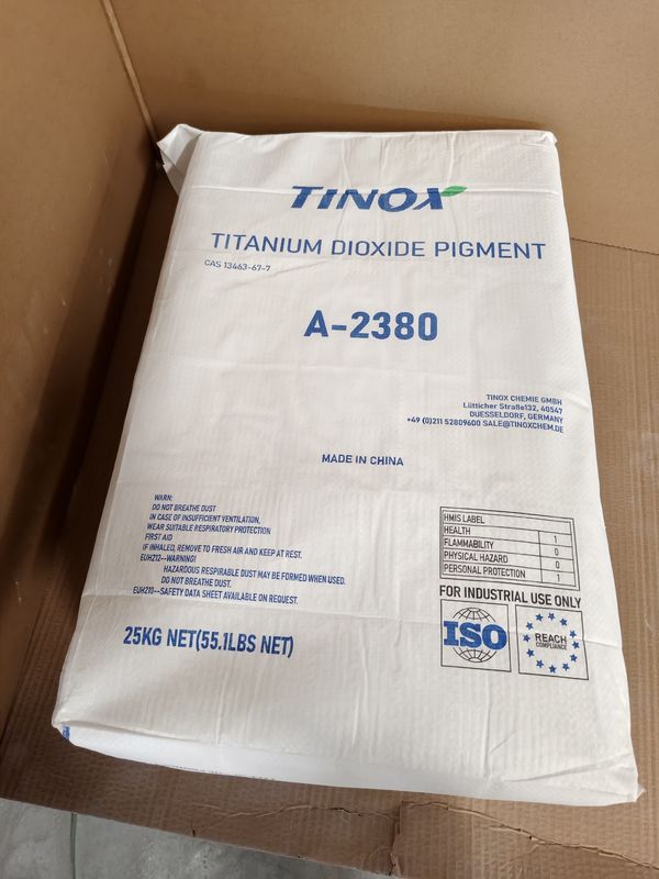 Processing Instructions: Pre-mix water and dispersing agent. Slowly add TINOX A-2380 under high-speed dispersion (1500-2000 rpm). Add extenders and continue mixing for 20-30 minutes. Let down with binder and additives.